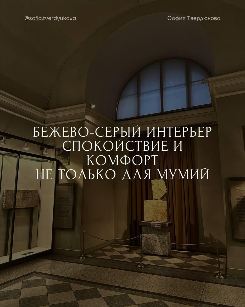 Бежево-серый интерьер. Спокойствие и комфорт не только для мумий, на примере зала №100 Государственного Эрмитажа.