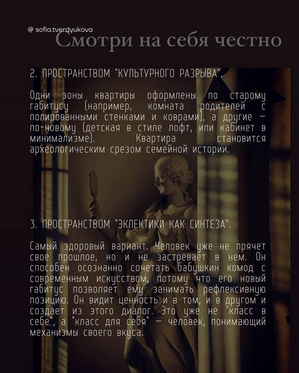 "Вкус есть amor fati, выбор судьбы, но выбор вынужденный, навязанный условиями существования, которые, исключая как пустые мечты любую другую возможность, не оставляют иного выбора, чем вкус к необходимому." Пьер Бурдьё.