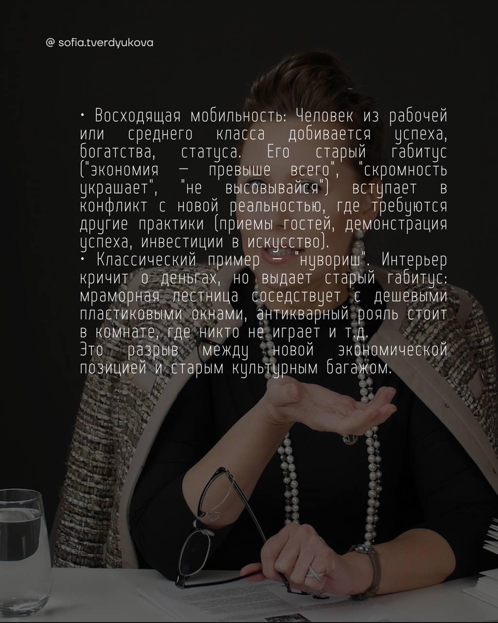«Подобно тому, как надпись на лбу избранного народа гласила о его принадлежности Иегове, разделение труда запечатлевает на рабочем мануфактуры клеймо, утверждающее его собственностью капитала». Это клеймо, о котором говорит Маркс, есть не что иное, как сам стиль жизни, которым самые обездоленные немедленно выдают себя, что выражается даже в их способе проводить свободное время, служащем контрастом для благородных мероприятий и вносящем свой вклад, по принципу отрицания, в диалектику притязания и различия, лежащих в основе постоянных изменений вкуса.